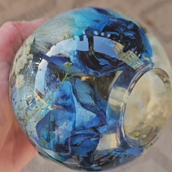 Portacandele a sfera in resina e fiori essiccati
